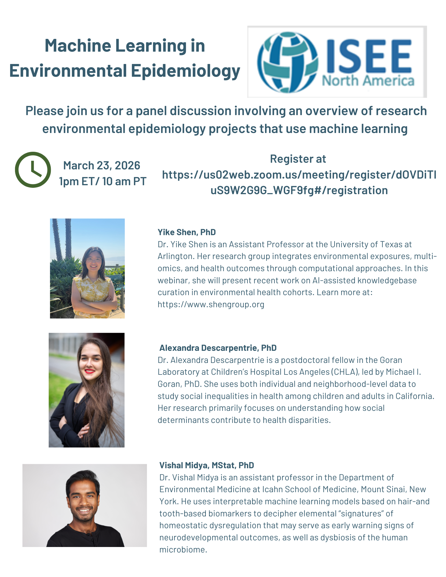 The ISEE North America Chapter offers a robust webinar program covering a wide range of topics, including environmental health policy, emerging research methods, career and professional development, and issues of relevance to practitioners, researchers, and trainees across the field. These webinars are designed to foster learning, dialogue, and connection within the environmental epidemiology community.